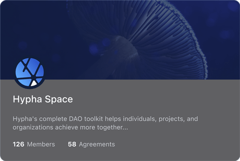 Spaces are the foundational building blocks in Hypha — dynamic containers where purpose comes to life. Whether you're launching a startup, a local food co-op, a regenerative city, or a global alliance, a space allows you to define your mission, structure, and members. Use templates or start from scratch — either way, you're architecting something truly your own.