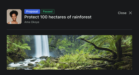 One person, one vote? Token-weighted? Earned voice? With Hypha, you can define the decision-making method that fits your culture. From egalitarian voting to future options like Liquid Democracy or Quadratic Voting, our tools let you align decision systems with your shared values.